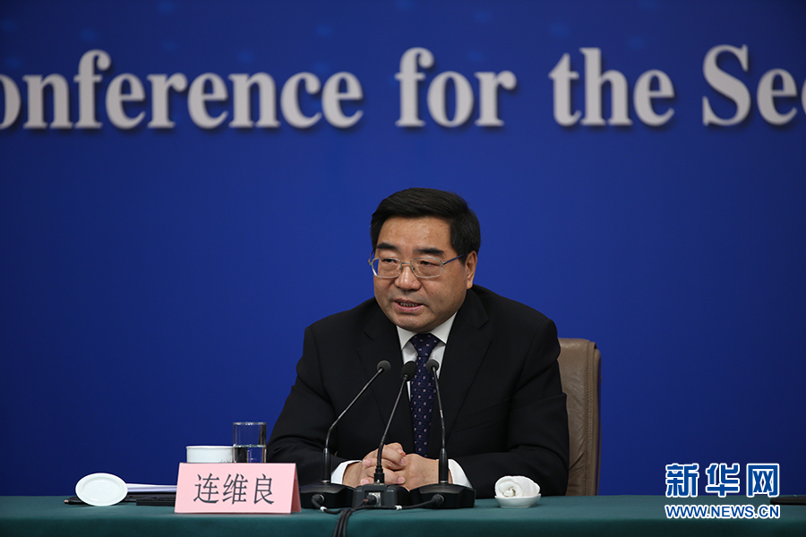 十三屆全國人大二次會議新聞中心于3月6日(星期三)上午10時在梅地亞中心新聞發(fā)布廳舉行記者會,邀請國家發(fā)展改革委主任何立峰,副主任寧吉喆、連維良就“大力推動經(jīng)濟高質(zhì)量發(fā)展”相關問題回答中外記者的提問。圖為連維良回答記者提問。新華網(wǎng)/中國政府網(wǎng) 劉廈 攝