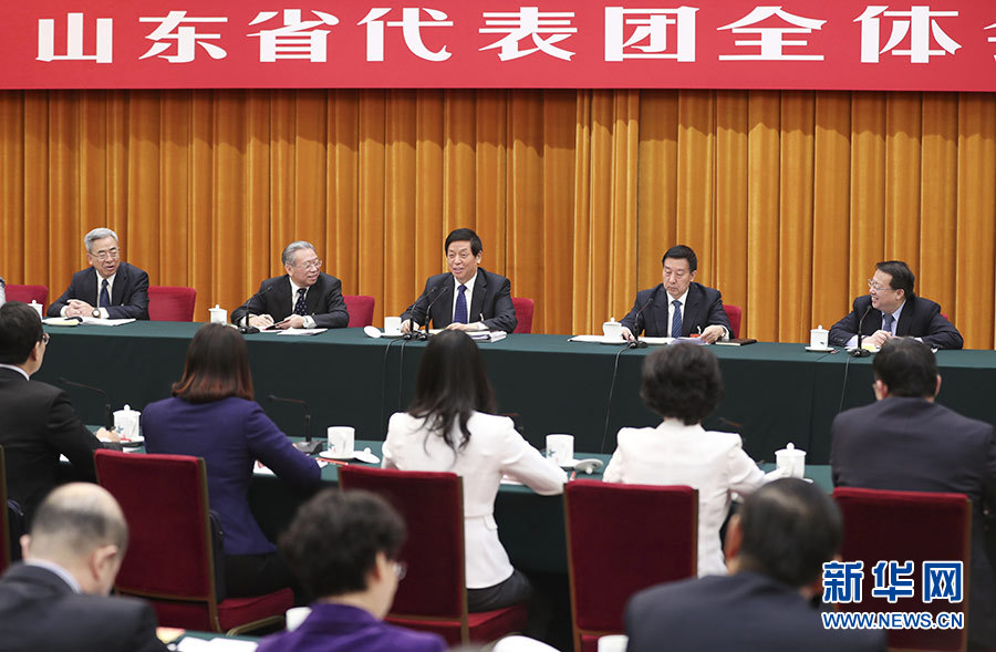 栗戰書在山東代表團參加審議。在認真聽取劉家義、龔正、郭銳等代表發言后,栗戰書說,中國特色社會主義進入新時代,要更加自覺地維護習近平總書記黨中央的核心、全黨的核心地位,維護黨中央權威和集中統一領導,以習近平新時代中國特色社會主義思想領航定向、凝心聚力,指導和推進各項工作。希望山東認真學習貫徹習近平總書記對山東工作的重要指示要求,貫徹新發展理念,探索以生態優先、綠色發展為導向的高質量發展新路子,推動經濟發展質量變革、效率變革、動力變革。把打好脫貧攻堅戰與實施鄉村振興戰略有機銜接起來,打造鄉村振興的齊魯樣板。繁榮發展文化事業,大力弘揚沂蒙精神,為新時代改革發展提供強大精神動力,努力實現習近平總書記提出的“走在前列、全面開創”的殷切期望。