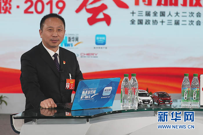 全國人大代表、東風商用車有限公司車輛工廠調檢一車間“王濤班”班長王建清做客新華網2019全國兩會特別報道。新華網?郭小天 攝