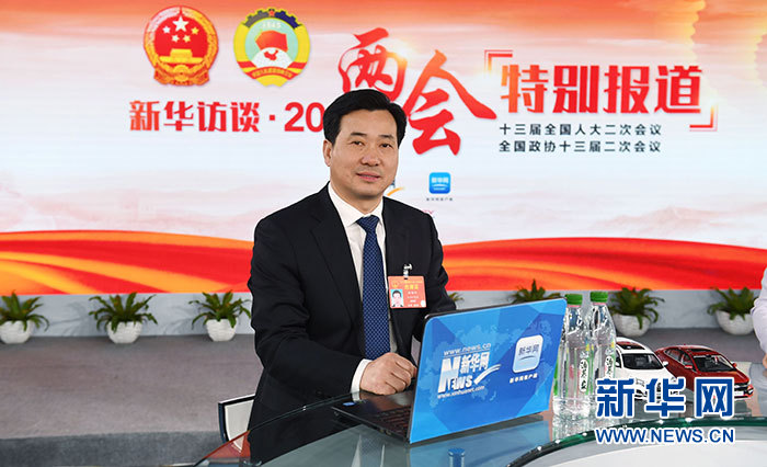全國人大代表、江蘇科行環保股份有限公司董事長劉懷平做客新華網2019全國兩會特別報道。新華網 李相博攝。