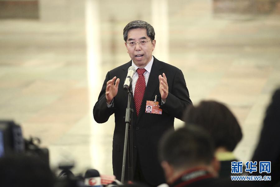 3月8日,十三屆全國人大二次會議在北京人民大會堂舉行第二次全體會議。這是國務院發展研究中心黨組書記馬建堂在“部長通道”接受采訪。新華社記者 金立旺 攝