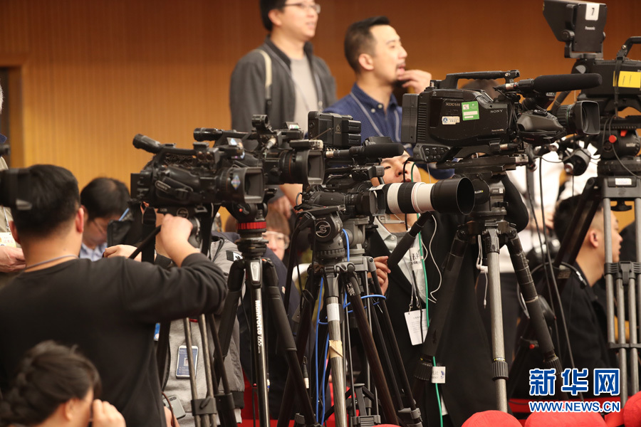 十三屆全國人大二次會議新聞中心3月8日10時在梅地亞中心新聞發布廳舉行記者會,邀請國務委員兼外交部長王毅就“中國外交政策和對外關系”相關問題回答中外記者提問。圖為記者在現場準備。新華網/中國政府網 陳杰 攝