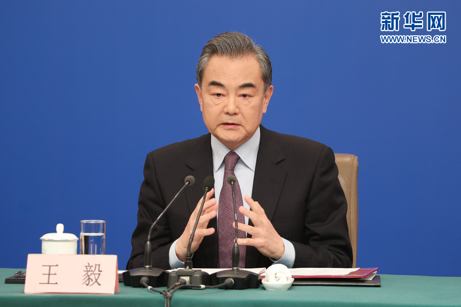 十三屆全國人大二次會議新聞中心3月8日10時在梅地亞中心新聞發布廳舉行記者會,邀請國務委員兼外交部長王毅就“中國外交政策和對外關系”相關問題回答中外記者提問。圖為王毅回答記者提問。新華網/中國政府網?陳杰 攝
