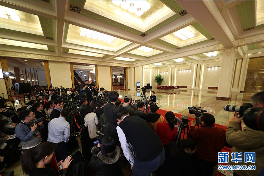 3月8日,2019年全國兩會(huì)第三場(chǎng)“部長(zhǎng)通道”在人民大會(huì)堂舉行。部長(zhǎng)們?cè)谶@里直面熱點(diǎn),回應(yīng)關(guān)切。這是記者在“部長(zhǎng)通道”采訪。新華網(wǎng)/中國政府網(wǎng) 陳杰 攝