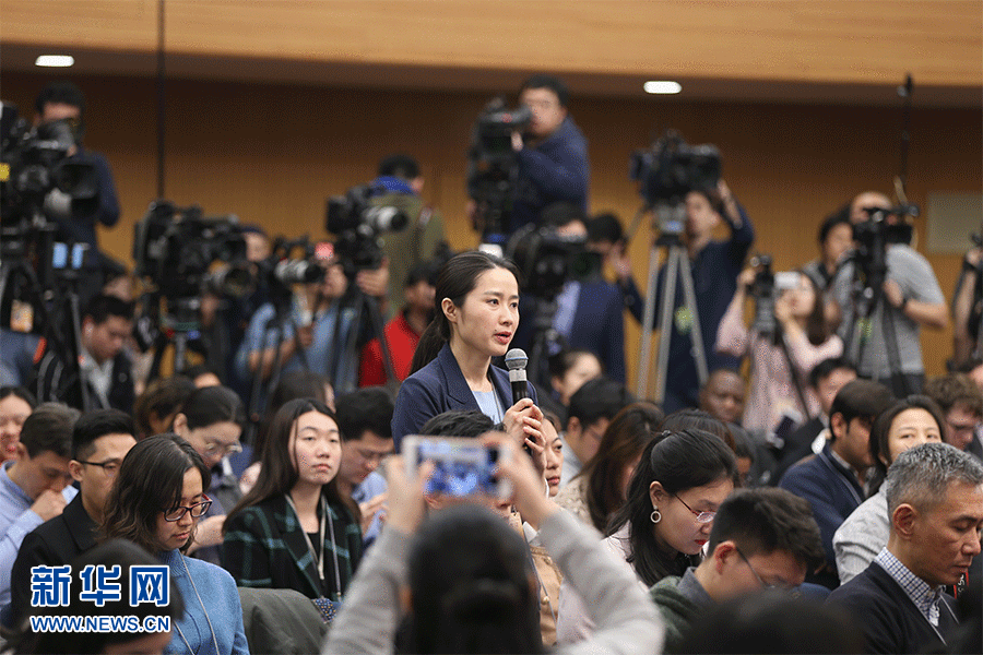 十三屆全國人大二次會(huì)議新聞中心3月9日(星期六)10時(shí)30分在梅地亞中心新聞發(fā)布廳舉行記者會(huì),邀請(qǐng)商務(wù)部部長鐘山、副部長兼國際貿(mào)易談判副代表王受文、副部長錢克明就“促進(jìn)形成強(qiáng)大國內(nèi)市場(chǎng) 推動(dòng)全方位對(duì)外開放”相關(guān)問題回答中外記者提問。圖為中央廣播電視總臺(tái)央視記者提問。新華網(wǎng)/中國政府網(wǎng) 劉廈 攝