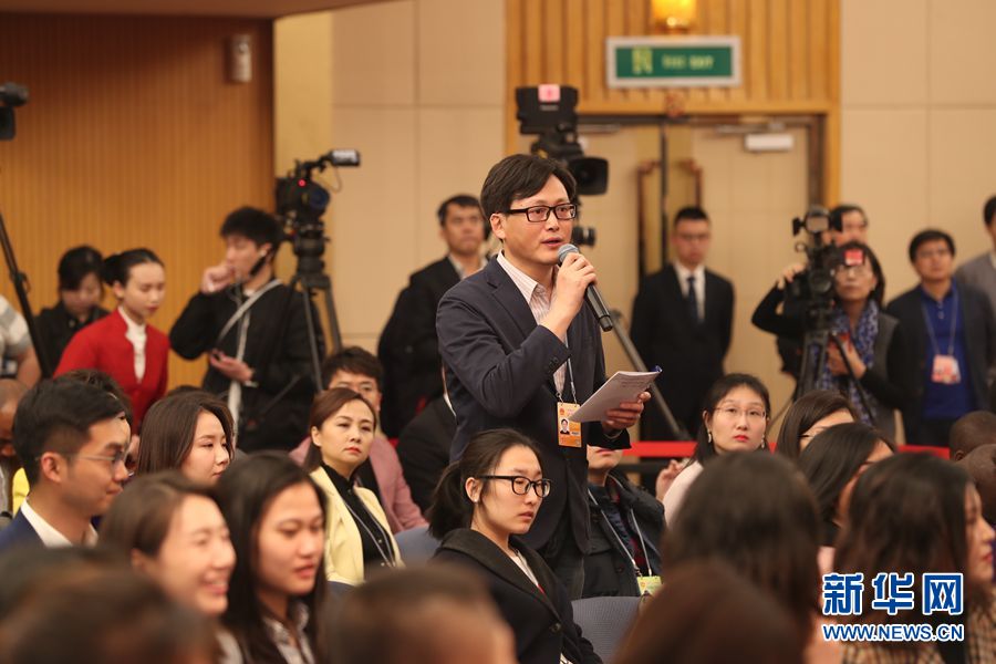 十三屆全國人大二次會議新聞中心3月9日在梅地亞中心新聞發布廳舉行記者會,邀請全國人大農業與農村委員會主任委員陳錫文、全國人大財政經濟委員會副主任委員烏日圖、全國人大常委會法制工作委員會副主任劉俊臣、全國人大常委會法制工作委員會副主任許安標、全國人大環境與資源保護委員會委員程立峰就“人大立法工作”相關問題回答記者提問。圖為新京報記者提問。新華網/中國政府網 陳杰 攝