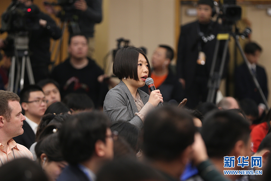 十三屆全國人大二次會議新聞中心于3月10日(星期日)上午10時30分在梅地亞中心新聞發布廳舉行記者會,邀請中國人民銀行行長易綱,副行長陳雨露,副行長、國家外匯管理局局長潘功勝,副行長范一飛就“金融改革與發展”相關問題回答記者提問。圖為中國日報記者提問。新華網/中國政府網 劉廈 攝