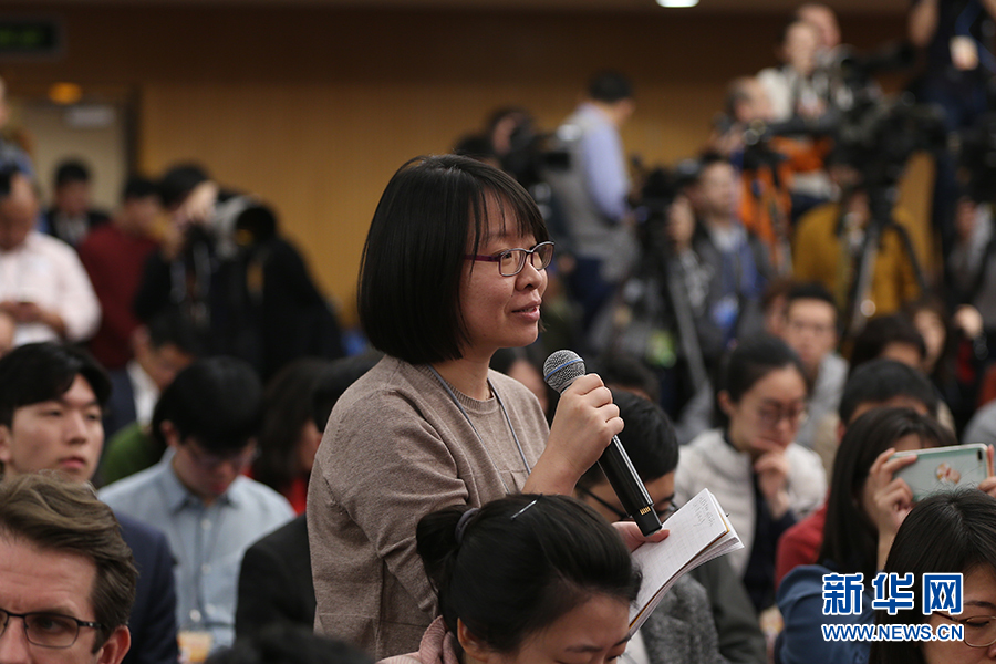 十三屆全國人大二次會議新聞中心于3月10日(星期日)上午10時30分在梅地亞中心新聞發布廳舉行記者會,邀請中國人民銀行行長易綱,副行長陳雨露,副行長、國家外匯管理局局長潘功勝,副行長范一飛就“金融改革與發展”相關問題回答記者提問。圖為新加坡聯合早報提問。新華網/中國政府網 劉廈 攝