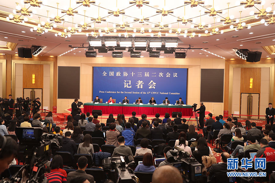 全國政協(xié)十三屆二次會(huì)議3月10日(星期日)上午8:45在梅地亞兩會(huì)新聞中心舉行記者會(huì),邀請(qǐng)5位政協(xié)委員就“新時(shí)代政協(xié)履職”回答記者提問。圖為記者會(huì)現(xiàn)場(chǎng)。新華網(wǎng)、中國政府網(wǎng)進(jìn)行現(xiàn)場(chǎng)直播。新華網(wǎng)/中國政府網(wǎng) 劉廈攝