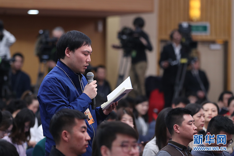 十三屆全國人大二次會議新聞中心3月11日(星期一)10時30分在梅地亞中心新聞發布廳舉行記者會,邀請國家市場監督管理總局局長張茅、國家藥品監督管理局局長焦紅、國家知識產權局局長申長雨就“加強市場監管 維護市場秩序”相關問題回答中外記者提問。圖為經濟日報融媒體中國經濟網記者提問。新華網/中國政府網?劉廈 攝?