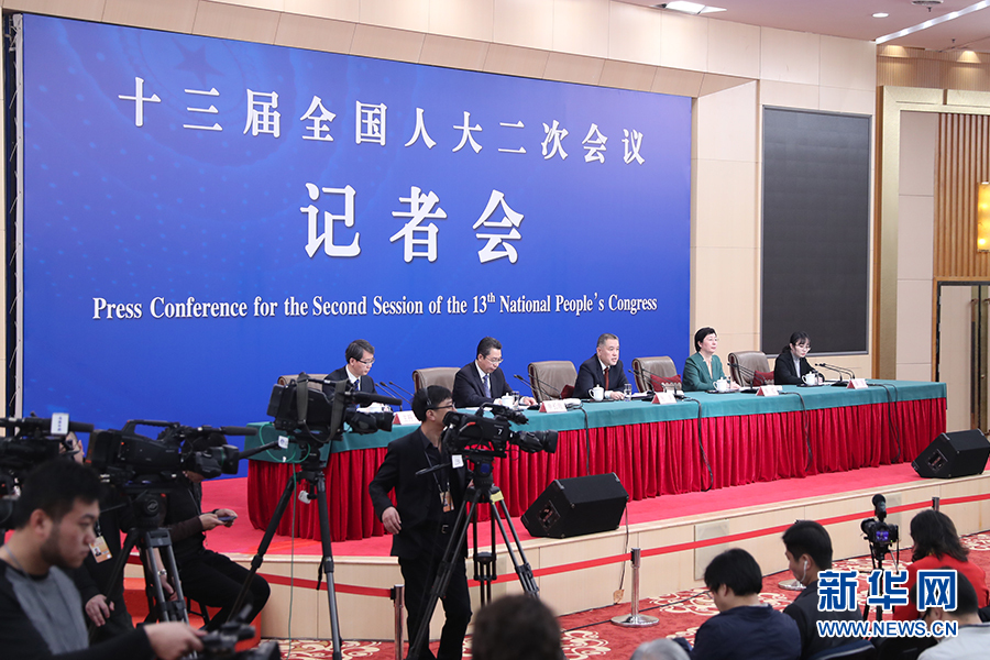 十三屆全國人大二次會議新聞中心3月11日(星期一)10時30分在梅地亞中心新聞發布廳舉行記者會,邀請國家市場監督管理總局局長張茅、國家藥品監督管理局局長焦紅、國家知識產權局局長申長雨就“加強市場監管 維護市場秩序”相關問題回答中外記者提問。圖為記者會現場。新華網/中國政府網?劉廈 攝