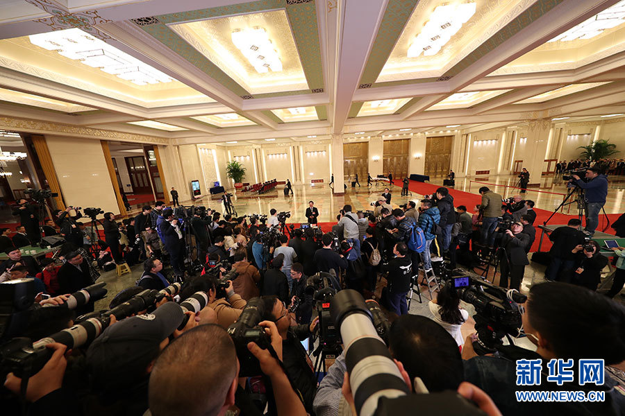 3月12日,2019年全國兩會第四場“部長通道”在人民大會堂舉行。部長們在這里直面熱點,回應關切。這是記者在“部長通道”采訪。新華網/中國政府網?劉廈 攝