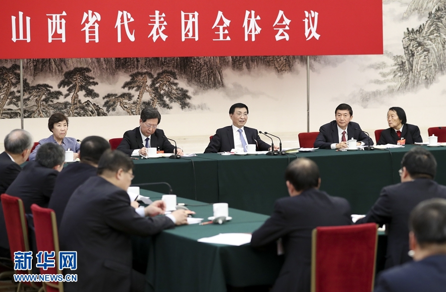 3月12日,中共中央政治局常委、中央書記處書記王滬寧參加十三屆全國人大二次會議山西代表團的審議。 新華社記者 丁海濤 攝