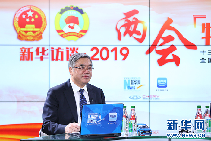 3月12日,全國政協常委兼副秘書長、民進中央副主席朱永新做客新華網2019全國兩會特別報道。 新華網 陳延特 攝