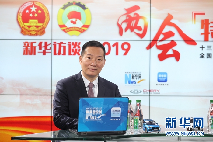 3月14日,全國人大代表、聯泓新材料科技股份有限公司董事長鄭月明做客新華網2019全國兩會特別報道。新華網 郭小天 攝