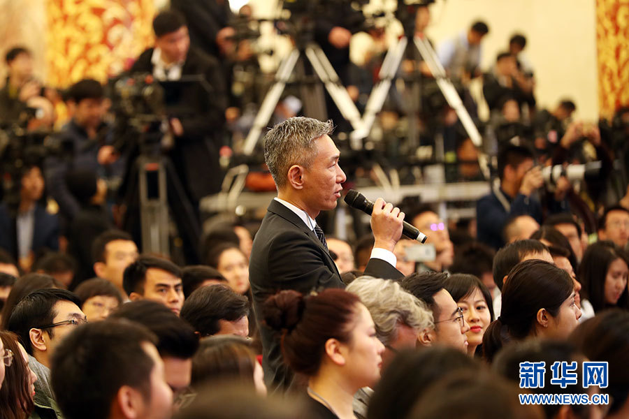 3月15日上午十三屆全國人大二次會議閉幕后,國務院總理李克強在人民大會堂三樓金色大廳會見采訪十三屆全國人大二次會議的中外記者并回答記者提出的問題。圖為路透社記者提問。新華網/中國政府網?陳杰 攝