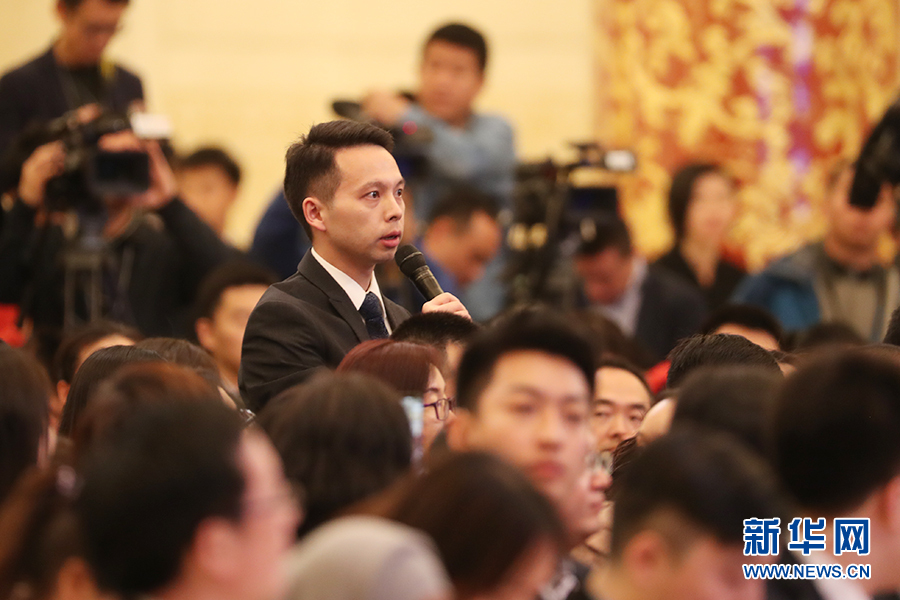 3月15日上午十三屆全國人大二次會議閉幕后,國務(wù)院總理李克強在人民大會堂三樓金色大廳會見采訪十三屆全國人大二次會議的中外記者并回答記者提出的問題。圖為中國日報記者提問。新華網(wǎng)/中國政府網(wǎng) 劉廈 攝