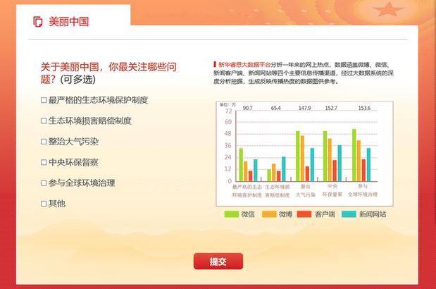 在分項調查中,關于防治大氣污染是網民最關心的生態環境問題。