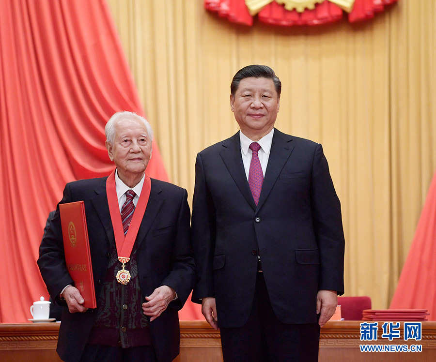 1月10日,2019年度國家科學技術(shù)獎勵大會在北京人民大會堂隆重舉行。中共中央總書記、國家主席、中央軍委主席習近平向獲得2019年度國家最高科學技術(shù)獎的原中國船舶重工集團公司第七一九研究所黃旭華院士頒獎。 新華社記者 李學仁 攝