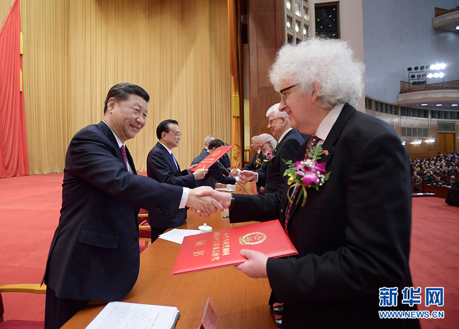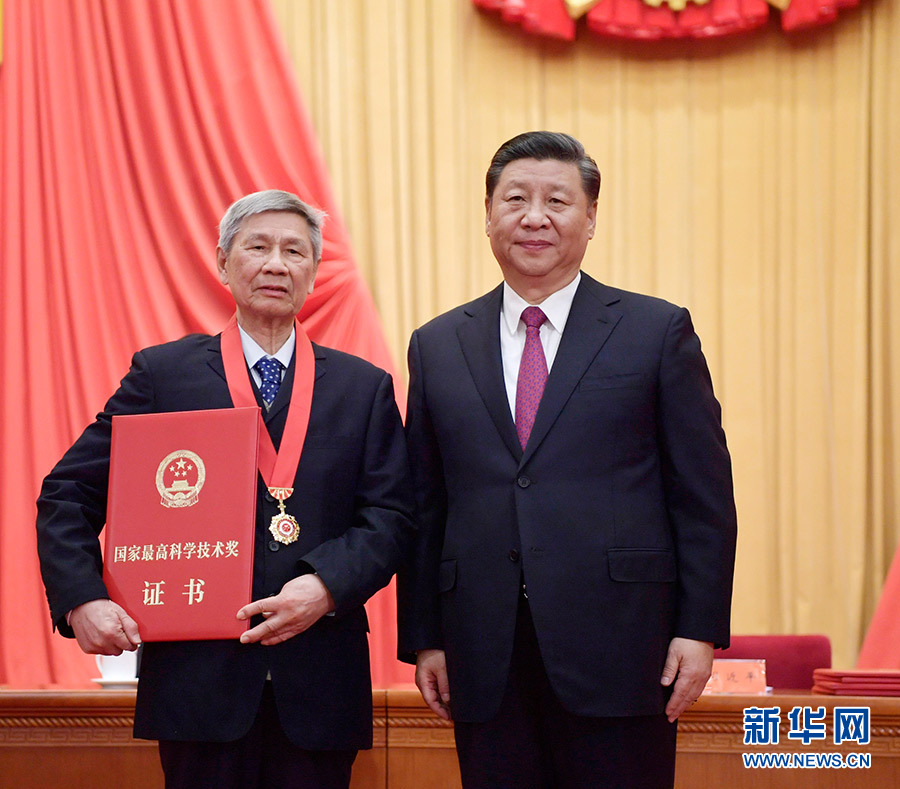 1月10日,2019年度國家科學技術(shù)獎勵大會在北京人民大會堂隆重舉行。這是中共中央總書記、國家主席、中央軍委主席習近平向獲獎代表頒發(fā)證書。 新華社發(fā)(盛佳鵬 攝)
