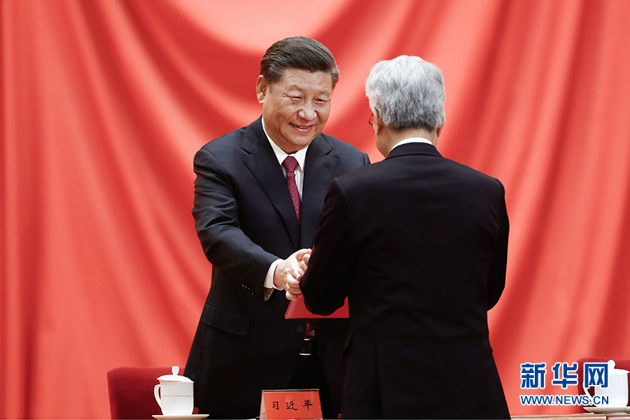 1月10日,2019年度國家科學技術(shù)獎勵大會在北京人民大會堂隆重舉行。這是習近平等黨和國家領(lǐng)導人同獲得2019年度國家最高科學技術(shù)獎的原中國船舶重工集團公司第七一九研究所黃旭華院士和中國科學院大氣物理研究所曾慶存院士一道,為獲得國家自然科學獎、國家技術(shù)發(fā)明獎、國家科學技術(shù)進步獎和中華人民共和國國際科學技術(shù)合作獎的代表頒發(fā)證書。 新華社記者 李學仁 攝