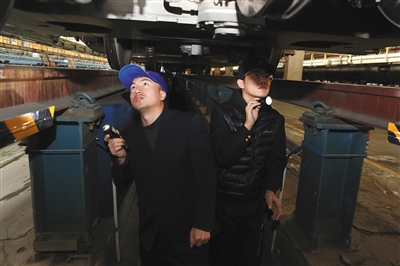 “這樣的油泥是正常,但如果它旁邊的傳感器也滲出了油泥,我們就得注意了。”檢查到牽引電機的齒輪箱時,皮春成指著它旁邊的一個乒乓球大小的圓形突起物跟徒弟說,“這個齒輪箱溫度傳感器探針,功能是檢測有齒輪箱的溫度有無異常,一些隱蔽的傷損,通過技術手段看不出來,只能通過外觀上的蛛絲馬跡去判斷,得不斷積累經驗。”皮春成告訴記者,今年春運自己的徒弟楊雪松就將要獨自完成一些列車的日常檢修任務,趁著白天不算特別忙,自己還是想多帶他走上幾趟。