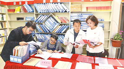 2019年是基層減負年,新疆庫車縣實行“基層一張表”試點改革,圖為干部到健康路社區匯總檔案報表。