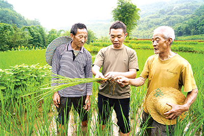 貴州赤水市組工干部、農技干部幫助村民解決水稻病蟲害防治難題。