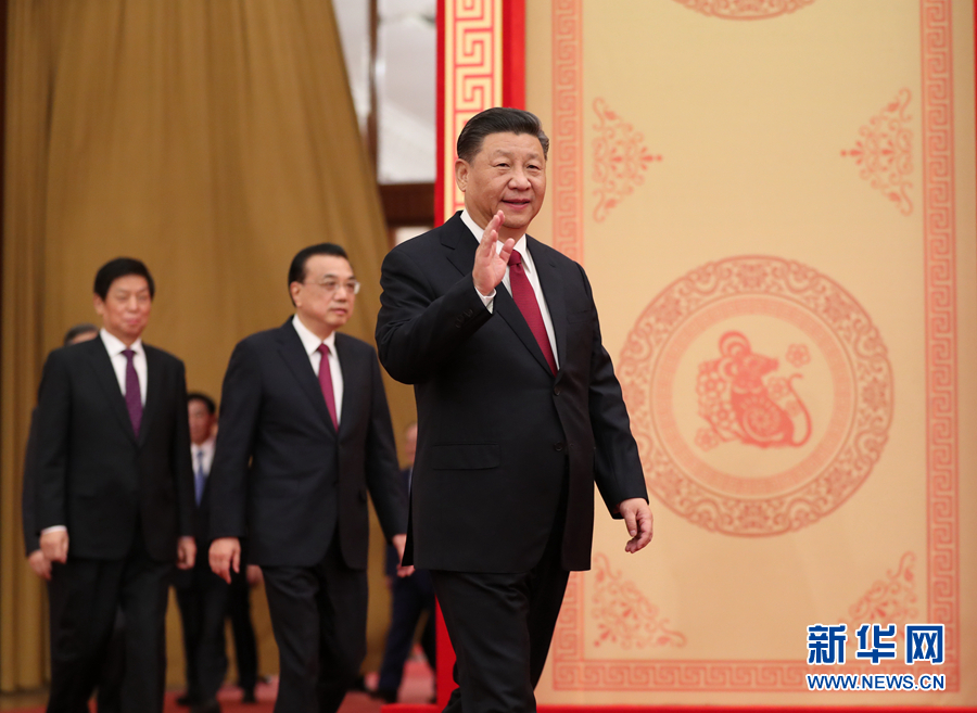 1月23日,中共中央、國務院在北京人民大會堂舉行2020年春節團拜會。黨和國家領導人習近平、李克強、栗戰書、汪洋、王滬寧、趙樂際、韓正、王岐山等同首都各界人士歡聚一堂,共迎新春。 新華社記者 李濤 攝