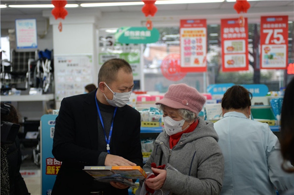 1月23日,在長(zhǎng)沙一家老百姓大藥房?jī)?nèi),店員向市民介紹不同類(lèi)型的口罩。當(dāng)日,長(zhǎng)沙不少市民來(lái)到藥店購(gòu)買(mǎi)口罩。長(zhǎng)沙連鎖藥企老百姓大藥房質(zhì)量負(fù)責(zé)人表示,為使市民都能買(mǎi)到口罩,防止囤貨,每位進(jìn)店市民限購(gòu)五份口罩;自新型冠狀病毒感染的肺炎疫情發(fā)生以來(lái),店內(nèi)口罩價(jià)格沒(méi)有變化。新華社發(fā)(陳振海 攝)