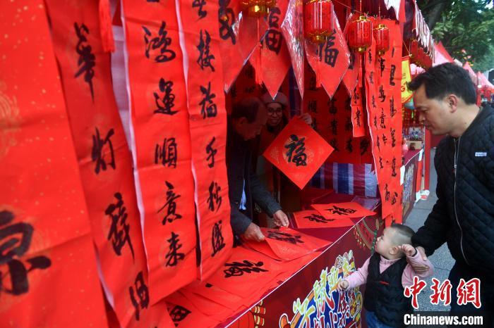 資料圖:圖為民眾挑選春聯。 呂明 攝