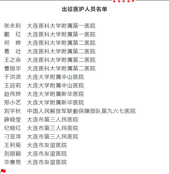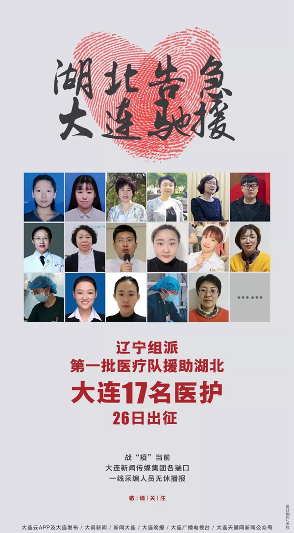 記者從大連市衛(wèi)生健康委獲悉,我市確定了17名醫(yī)護人員參與到遼寧第一批援助湖北應對新型冠狀病毒感染的肺炎疫情醫(yī)療隊中,今日早上將出征馳援。