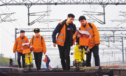 中國鐵路南昌局集團有限公司南鐵九江橋工段工人堅守崗位,加大檢修力度,確保春運期間京九繁忙干線暢通。王 浩攝(中經視覺)