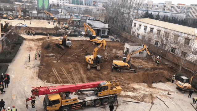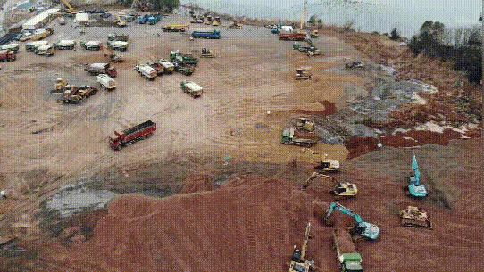 經(jīng)過一天一夜施工,新型冠狀病毒隔離房項目入場挖機41臺,推土機15臺,壓路機4臺,自卸車40臺,327名管理人員和336名工人集結(jié)完畢,累計平整全部場地9000平方米,內(nèi)轉(zhuǎn)土方2500立方米。