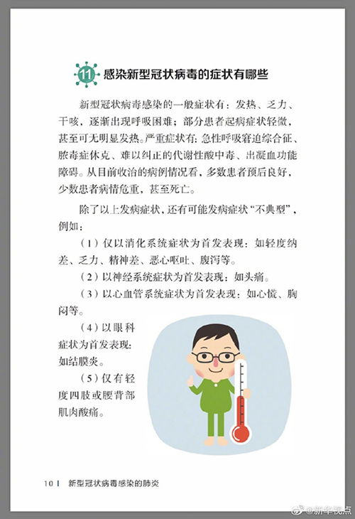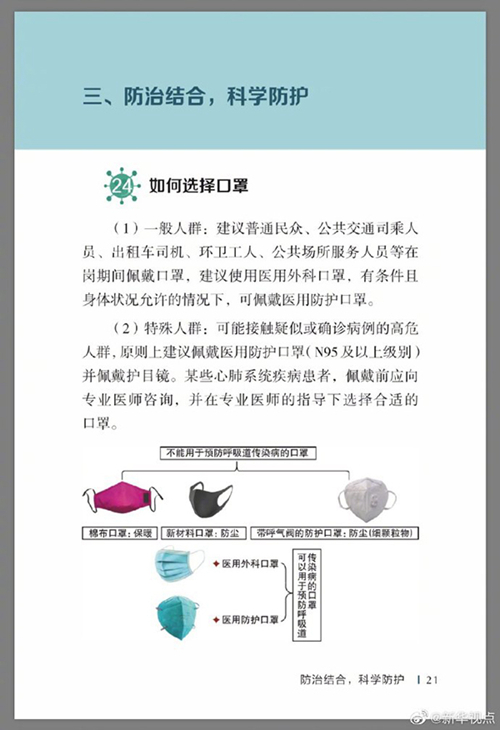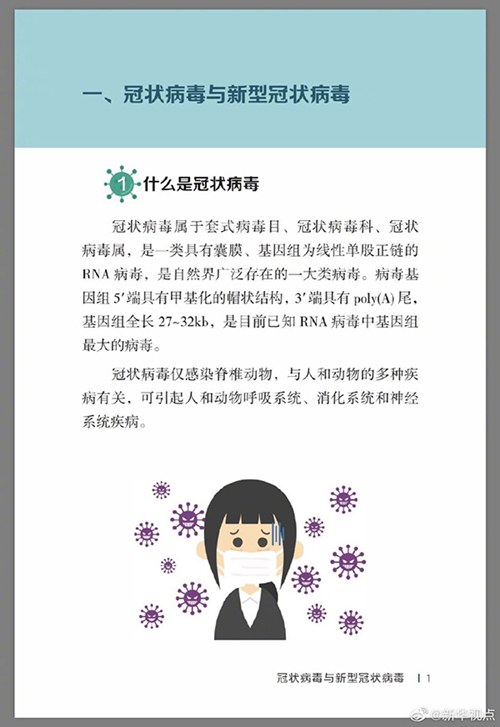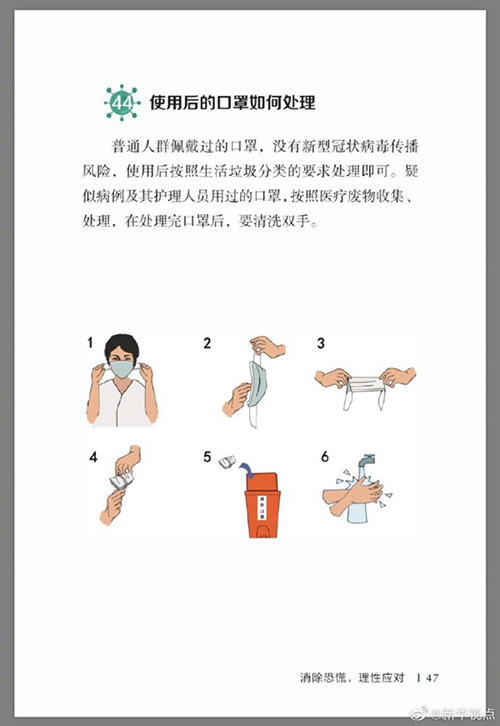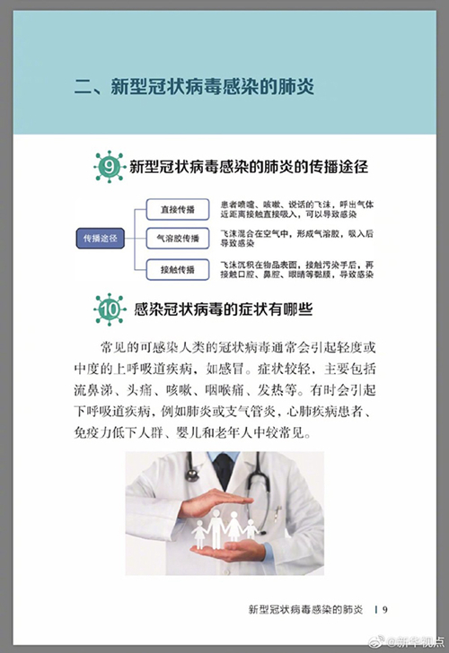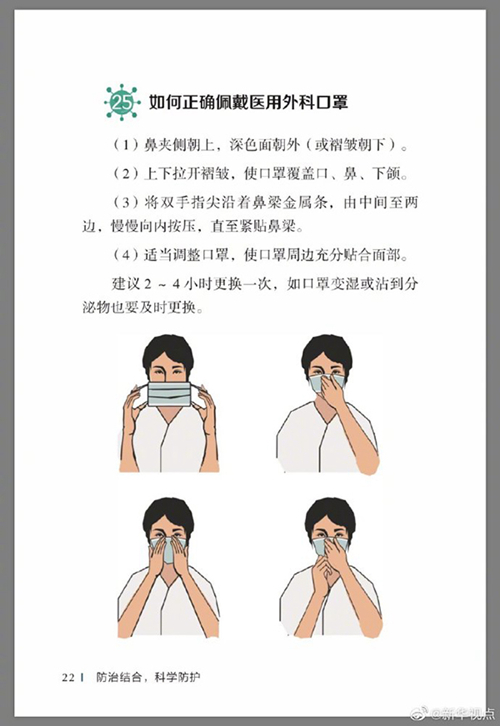 中國疾病預防控制中心編寫的《新型冠狀病毒感染的肺炎公眾防護指南》,日前出版發行。此書聚焦公眾個人與家庭防護、居家醫學觀察、理性就醫、心理疏導等防治細節,通過問答形式解讀新型冠狀病毒感染的肺炎有關問題疑惑,引導公眾正確認識,積極做到防治結合、科學防護、消除恐慌、理性應對。此書包括圖書、電子書、網絡版讀物等多種形式,第一批圖書已緊急送往武漢抗擊疫情第一線,電子書、網絡版讀物在學習強國、健康中國、人衛健康、掌閱等多個網絡平臺、微信公眾號公益傳播,并為全國各地提供可印制的PDF版本。(記者史競男;圖片來自《新型冠狀病毒感染的肺炎公眾防護指南》)