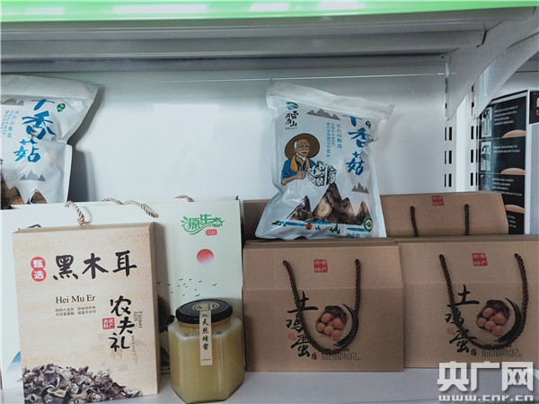 于衍來將村民的農(nóng)副產(chǎn)品進行包裝售賣(記者 王啟慧 攝)