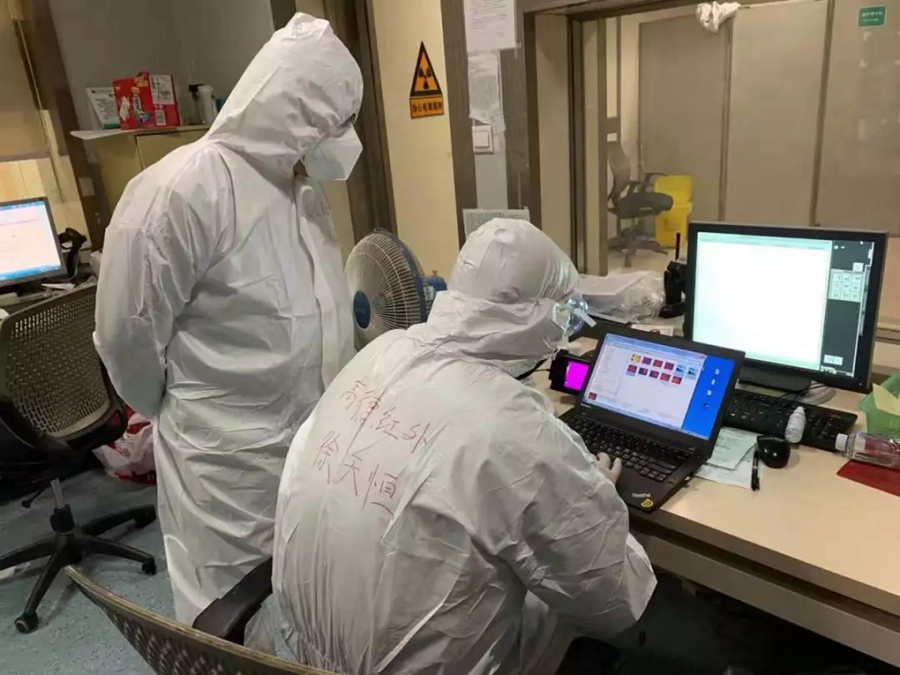 圖為高德紅外員工奮戰(zhàn)在醫(yī)院第一線。