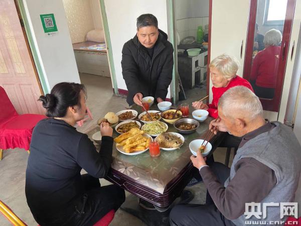 大年初一,崔建存家的午飯,中間站著的就是崔建存(央廣記者 柴華 攝)