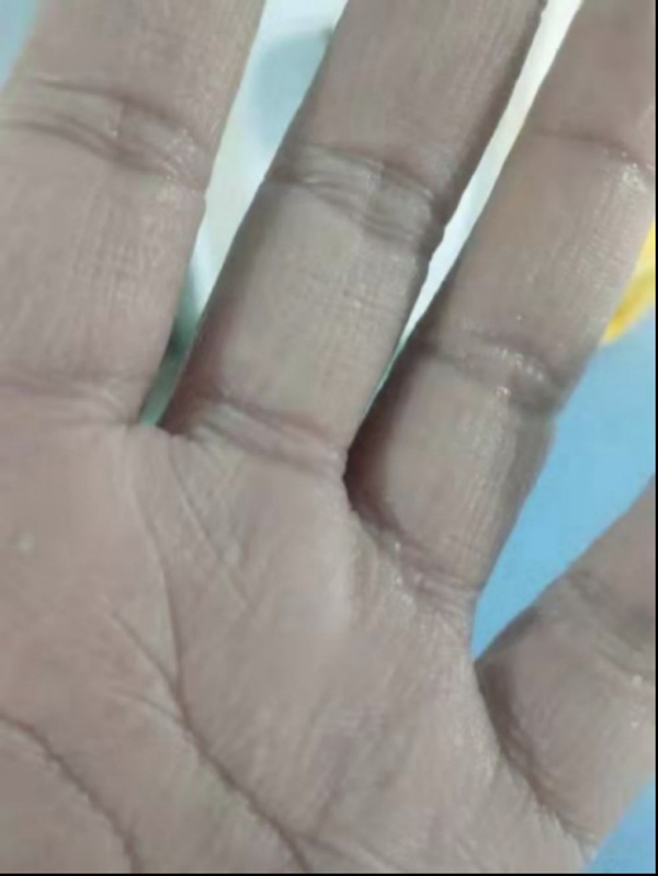 脫下厚重的防護服,王佳佳的手掌被汗水泡皺。
