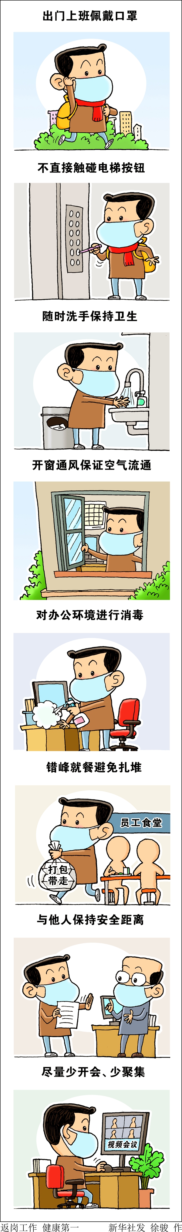 春節(jié)長假結(jié)束,人們陸續(xù)返崗復(fù)工,開始新一年的忙碌。當(dāng)前,疫情形勢依然嚴(yán)峻,節(jié)后上班切莫讓麻痹“上崗”,更需做好衛(wèi)生防護(hù)。佩戴口罩自不待言,避免扎堆就餐、勤洗手、勤消毒、避開密集人群、保持安全距離等,都是遠(yuǎn)離病毒的必要舉措。寧可把風(fēng)險(xiǎn)想得高一點(diǎn),也要把防控做得嚴(yán)一些。人人都是一道防線,做好本職工作是一種擔(dān)當(dāng),保護(hù)好自己也是一種擔(dān)當(dāng)。道路千萬條,健康平安第一條。