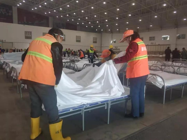 值得一提的是,昨晚,還有不少志愿者參與到“方艙醫院”的緊急布置中。