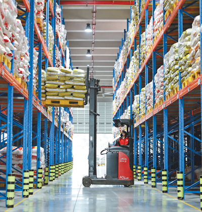 2月3日,重慶一家物流配送中心,工作人員正在快速分揀貨物,備貨保供應。孫凱芳攝(影像中國)