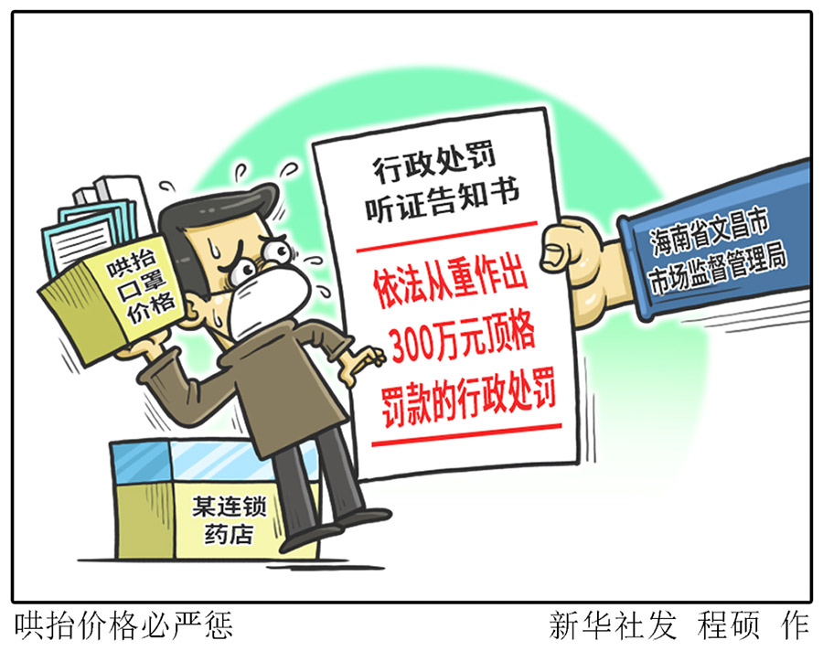 新華社???月6日電(記者吳茂輝)記者6日從海南省市場監督管理局獲悉,近日,海南一九堂藥品連鎖經營有限公司因哄抬價格,被文昌市市場監督管理局下達《行政處罰聽證告知書》。根據這份告知書,這家公司將被罰300萬元。