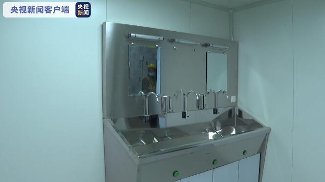 總臺央視記者 金珠:醫技樓的手術室中部分手術設備已經安裝完成了,還在施工當中。手術室的中央控制面板的屏幕上已經有數字在顯示了。經過手術室的門,醫生用于清潔和消毒手的地方已經安裝完成了。(總臺央視記者 王涵 金珠 高重)