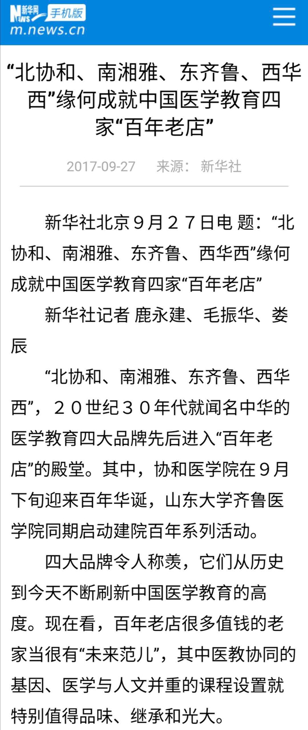 新華社有篇報道把它們稱為中國醫(yī)學(xué)教育四家“百年老店”,是20世紀30年代就聞名中華的醫(yī)學(xué)教育四大品牌。它們從歷史到今天不斷刷新中國醫(yī)學(xué)教育的高度。↓↓↓