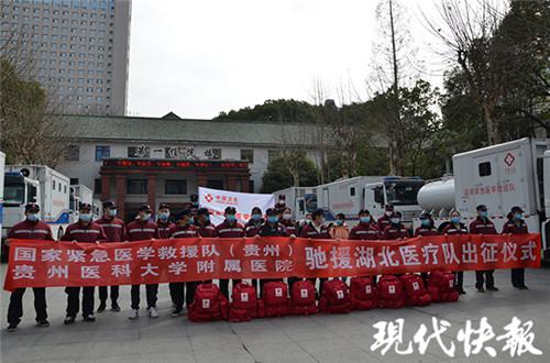 2月9日,根據(jù)國家衛(wèi)生健康委安排,國家緊急醫(yī)學(xué)救援隊(duì)(貴州)馳援湖北武漢執(zhí)行傳染病救治任務(wù)。救援隊(duì)由貴州醫(yī)科大學(xué)附屬醫(yī)院急診醫(yī)學(xué)科、感染管理科、內(nèi)科ICU、省緊急救援中心96999、檢驗(yàn)科、影像科、肝膽外科等科室共42名人員組成。
