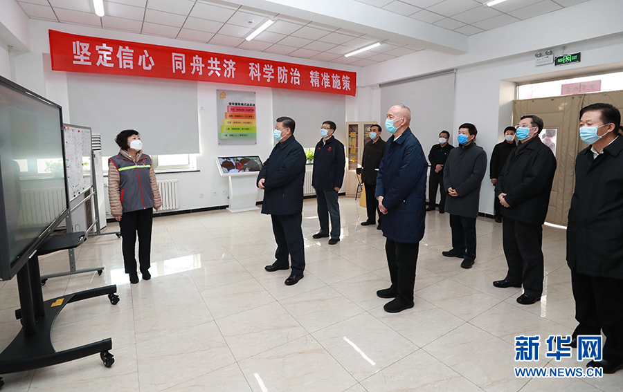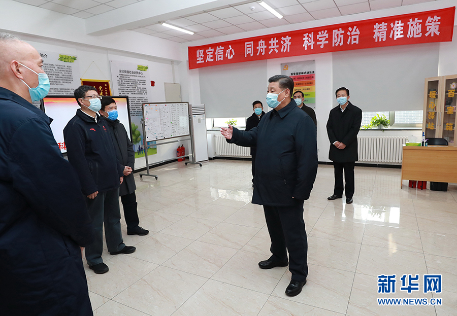 習近平首先來到北京市朝陽區安貞街道安華里社區,了解基層一線疫情聯防聯控情況。在社區居民委員會疫情防控指揮部,習近平聽取了安貞街道和安華里社區開展聯防聯控情況介紹。習近平對社區采取多項措施,落實防控責任,實現入戶排查、重點群體監控“兩個全覆蓋”等做法表示肯定。他強調,社區是疫情聯防聯控的第一線,也是外防輸入、內防擴散最有效的防線。把社區這道防線守住,就能有效切斷疫情擴散蔓延的渠道。全國都要充分發揮社區在疫情防控中的阻擊作用,把防控力量向社區下沉,加強社區各項防控措施的落實,使所有社區成為疫情防控的堅強堡壘。要以疫情防控工作成效來檢驗和拓展“不忘初心、牢記使命”主題教育成果,發揮基層黨組織政治引領作用和黨員先鋒模范作用,把社區居民發動起來,構筑起疫情防控的人民防線。