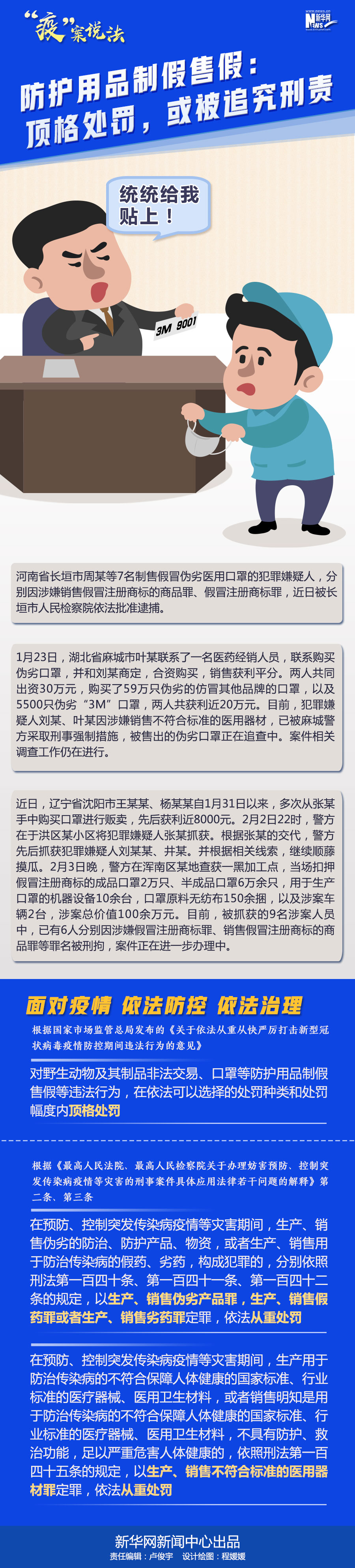 【“疫”案說法】防護用品制假售假:頂格處罰,或被追究刑責!-新華網