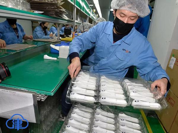施向健大年初一就開始安排復工的生產計劃、物料準備等工作。正月初四,三分之一員工到崗,開始恢復生產。“現在有250多名員工參加生產,以本地員工為主。目前,我們只生產紅外線額溫計,停止了其他所有商業需求,全力配合公共衛生防疫需求。”施向健告訴記者。