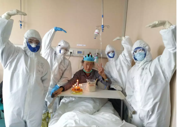 易老先生對我們說:“你們讓我度過了一個別開生面,永生難忘的76歲壽誕,讓我重拾戰(zhàn)勝病毒的信心。雖然你們穿著防護(hù)服,戴著面罩,看不清你們的臉,但我相信你們都是最美的白衣天使。”